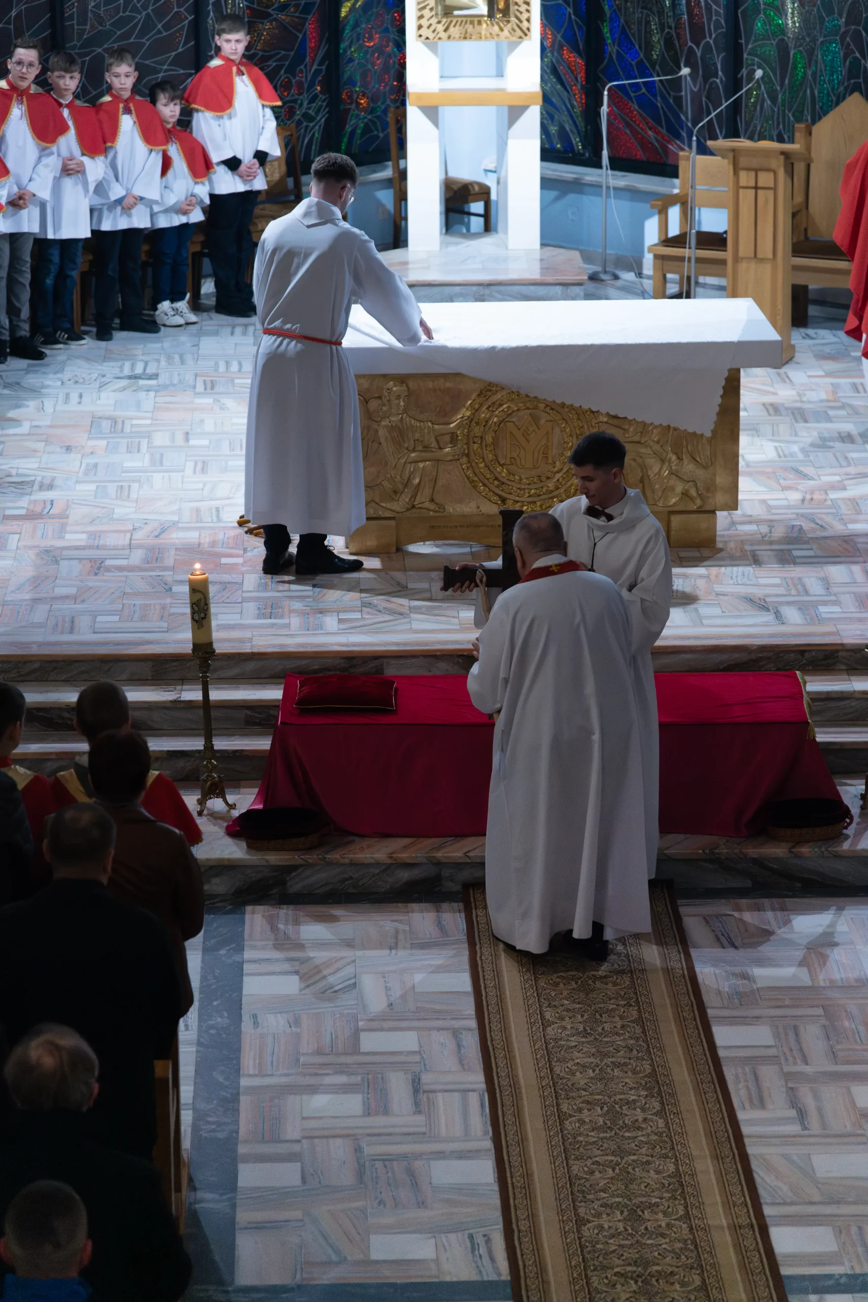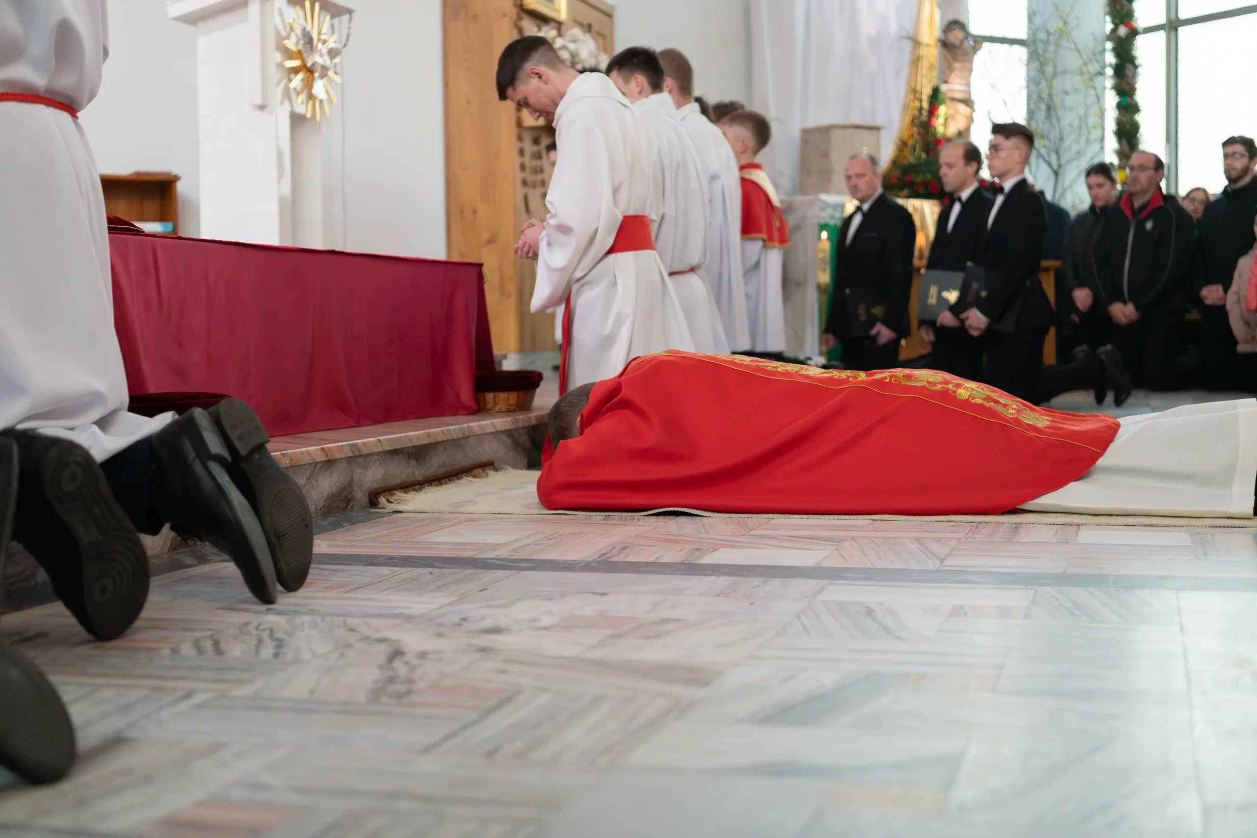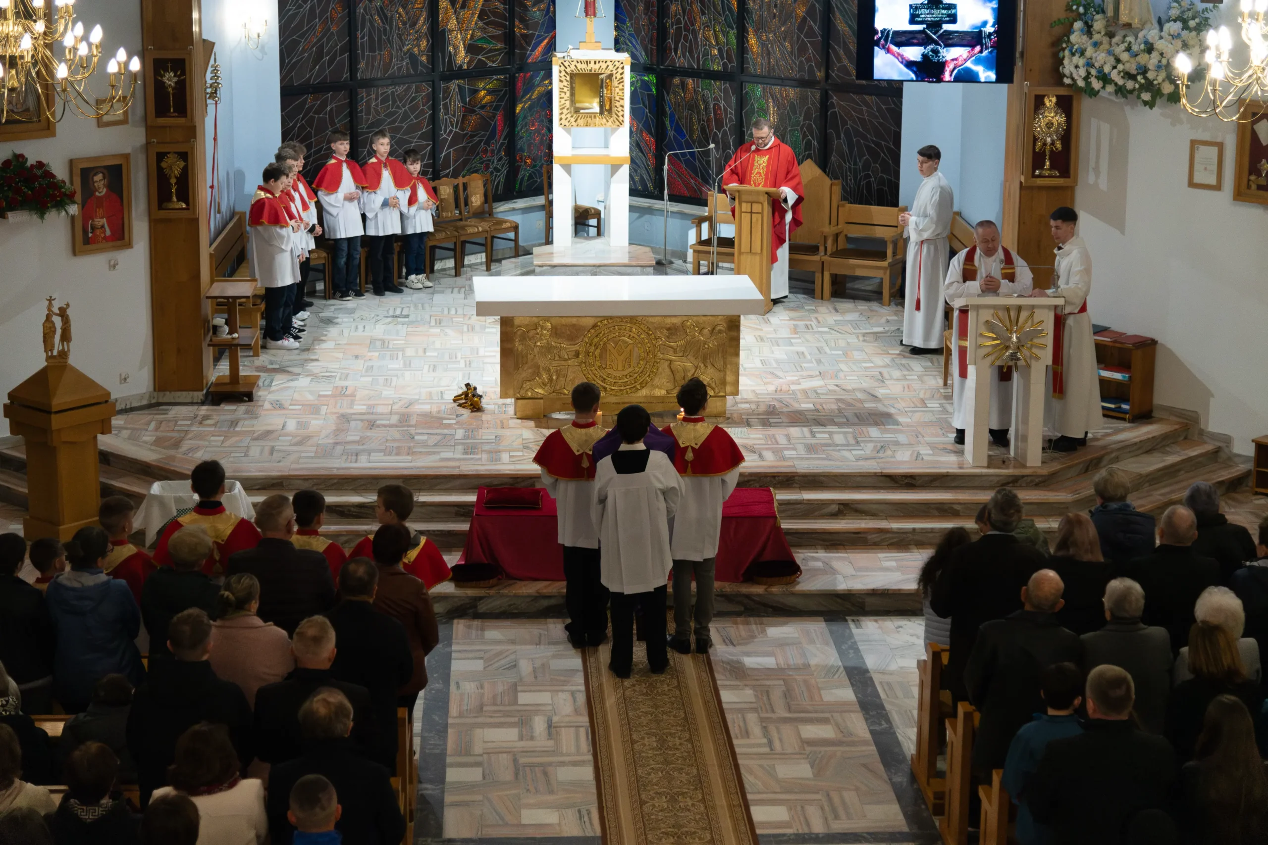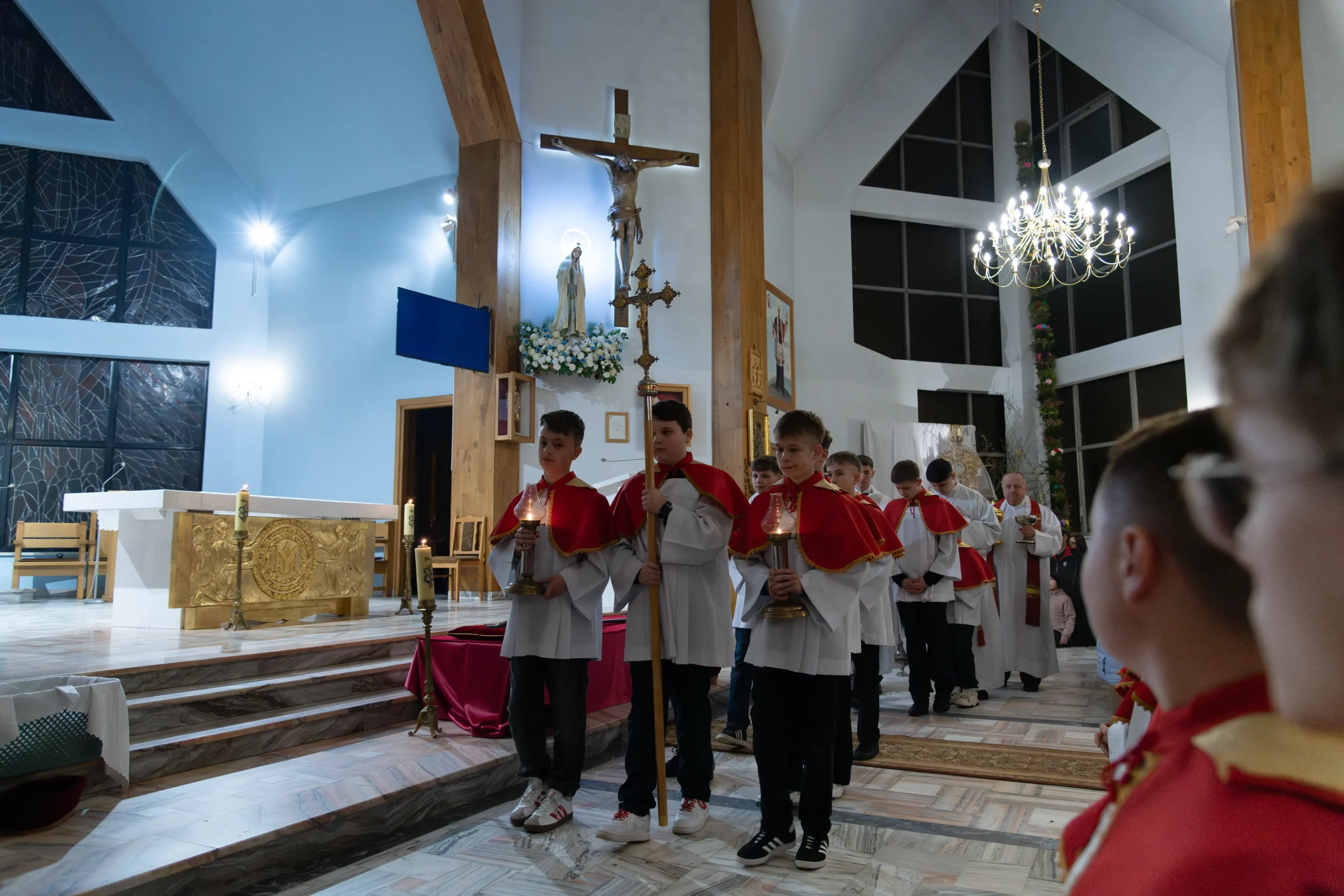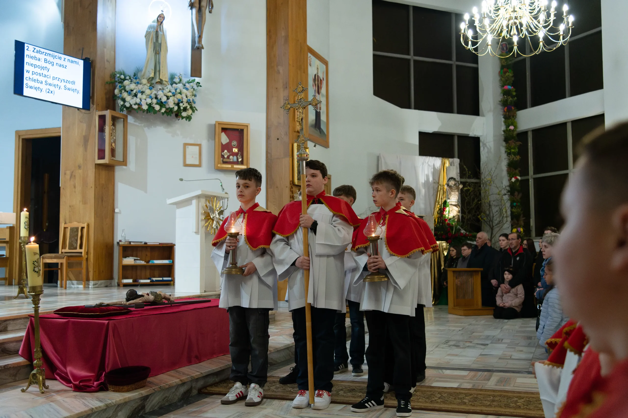 W Wielki Piątek wierni naszej parafii zgromadzili się w kościele, aby przeżywać Liturgię Męki Pańskiej – jedno z najbardziej poruszających wydarzeń całego roku liturgicznego. Jest to dzień szczególnej ciszy, skupienia i modlitwy, w którym Kościół nie sprawuje Eucharystii, lecz wspomina mękę i śmierć Jezusa Chrystusa na krzyżu .