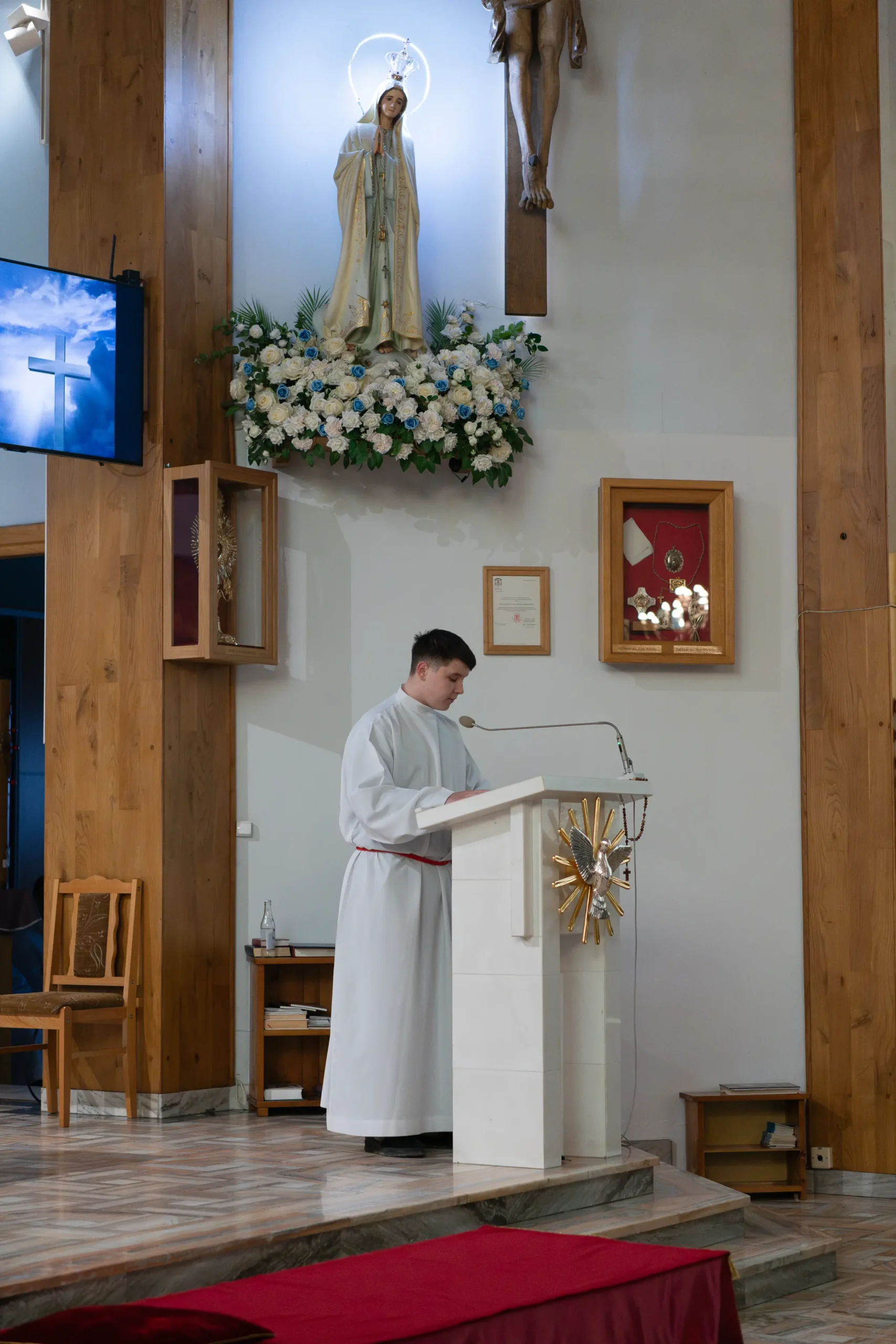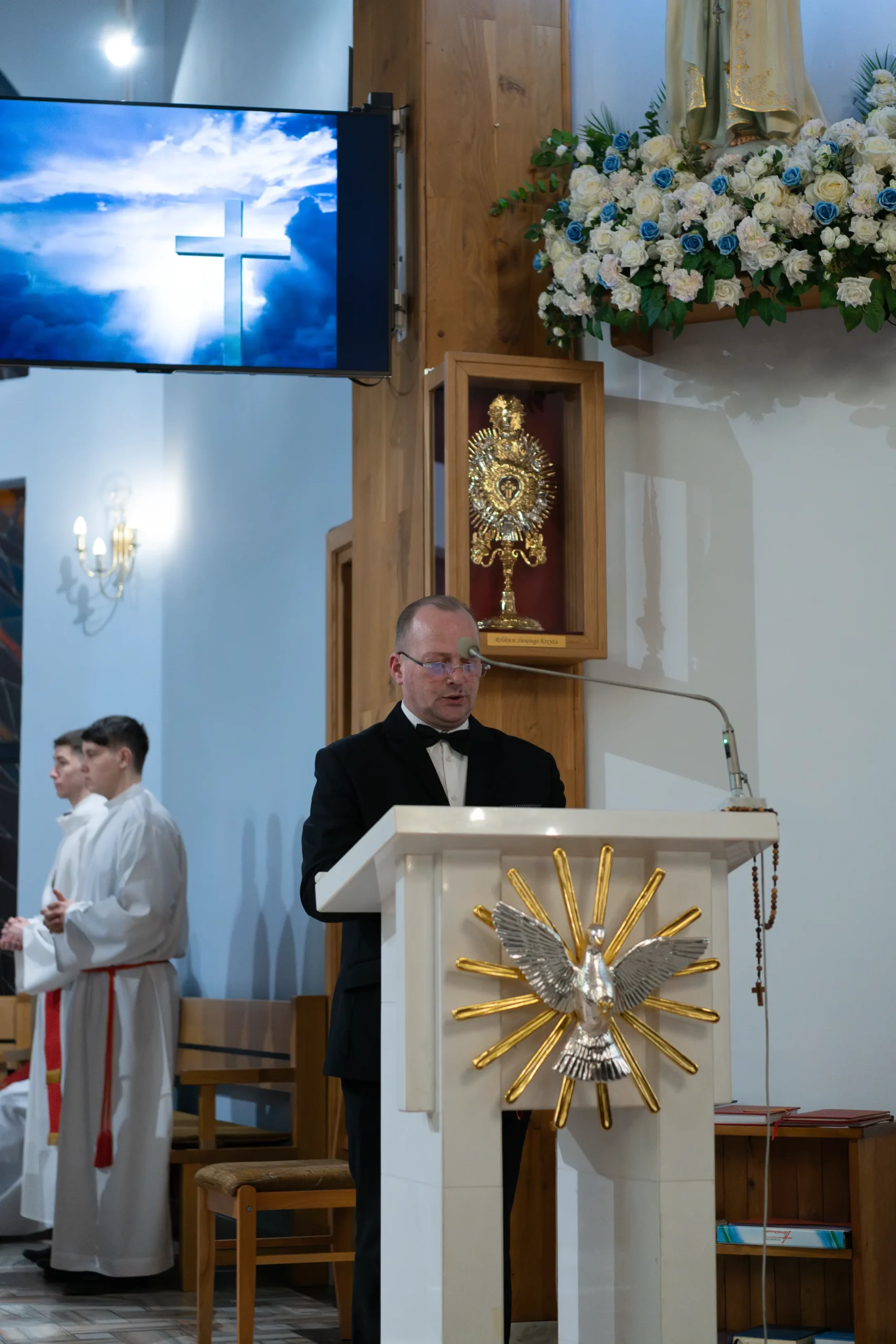 Ważnym momentem liturgii był śpiew Męki Pańskiej według św. Jana, wykonany przez parafialny chór Fatima. Ta szczególna forma – z podziałem na role i śpiewem – pozwala wiernym głębiej wejść w dramat wydarzeń i przeżyć je nie tylko jako słuchacze, ale jako uczestnicy misterium zbawienia . Następnie ksiądz proboszcz wygłosił homilię, pomagając zgromadzonym zrozumieć sens krzyża i ofiary Chrystusa w naszym codziennym życiu.