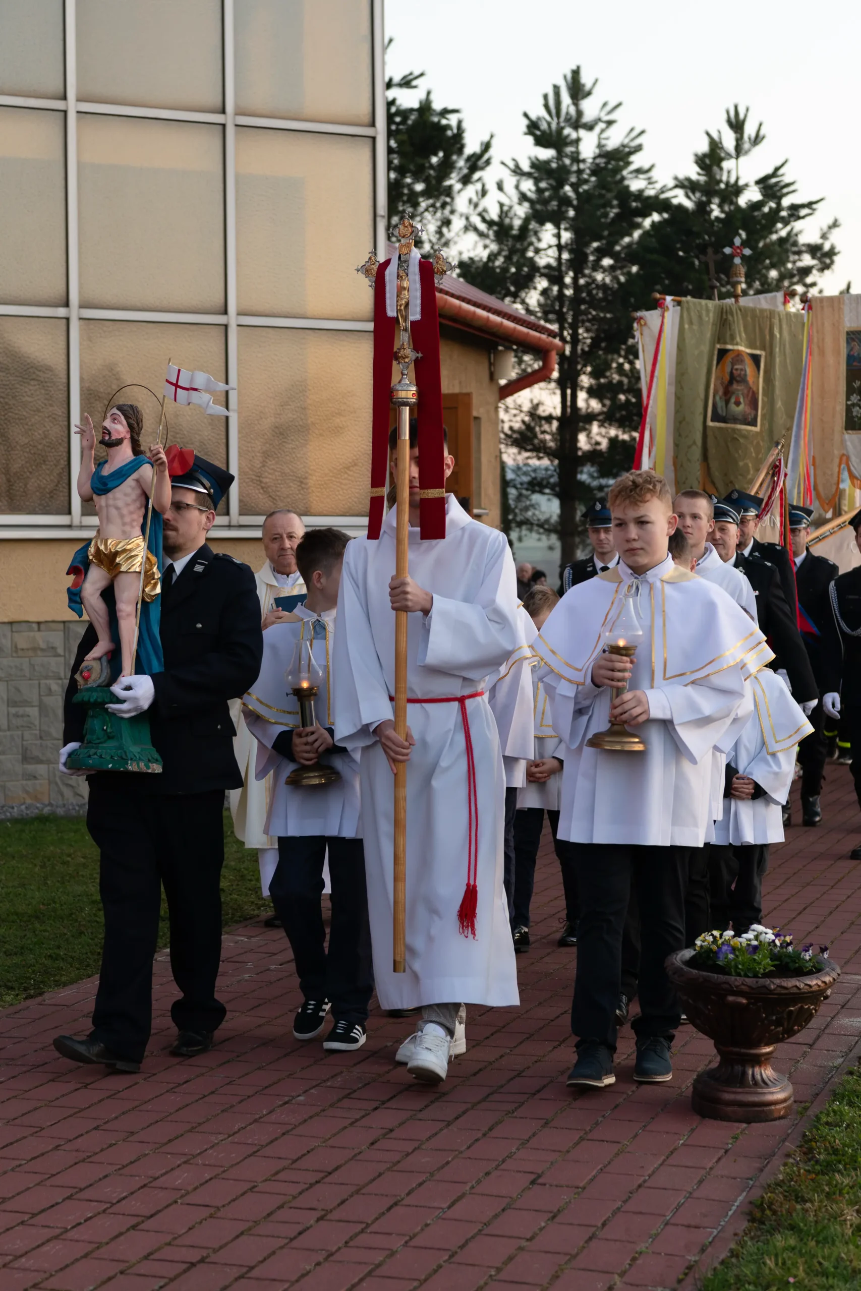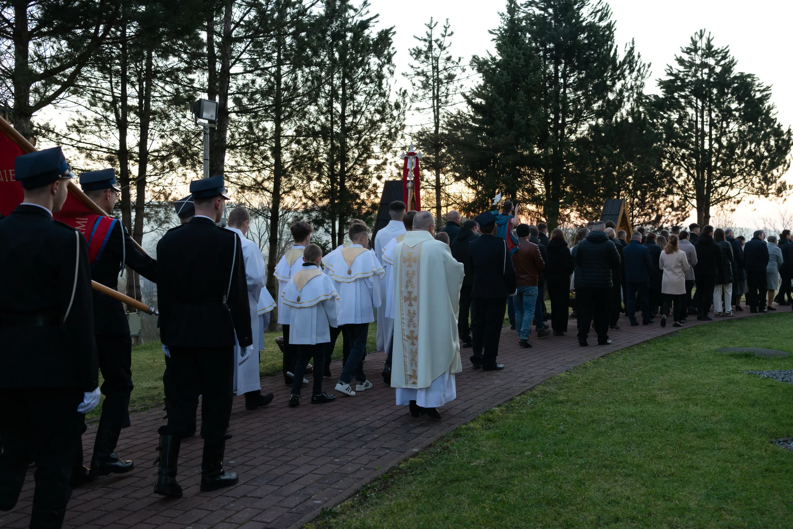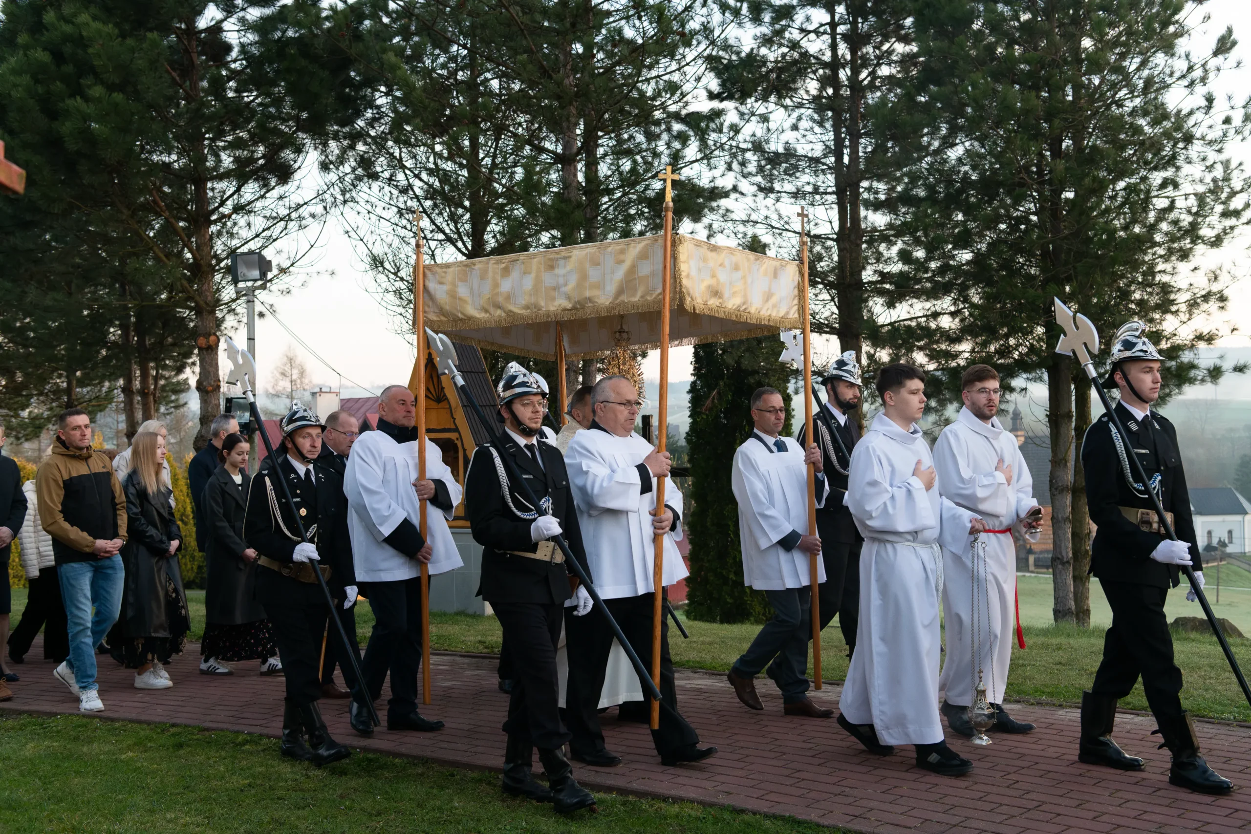 - Strażaków oraz pocztów sztandarowych za pełnienie warty przy Bożym Grobie i uświetnienie procesji.