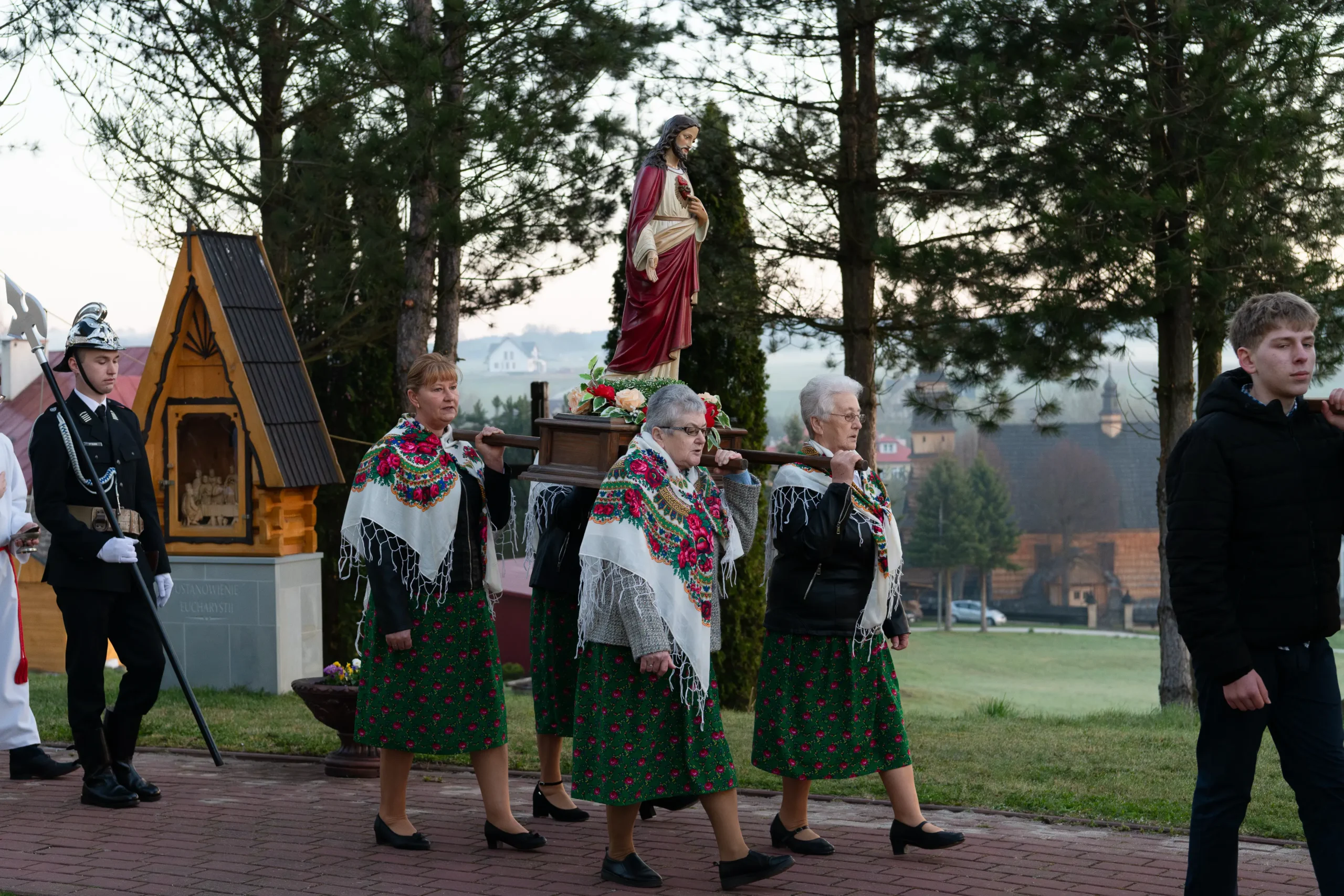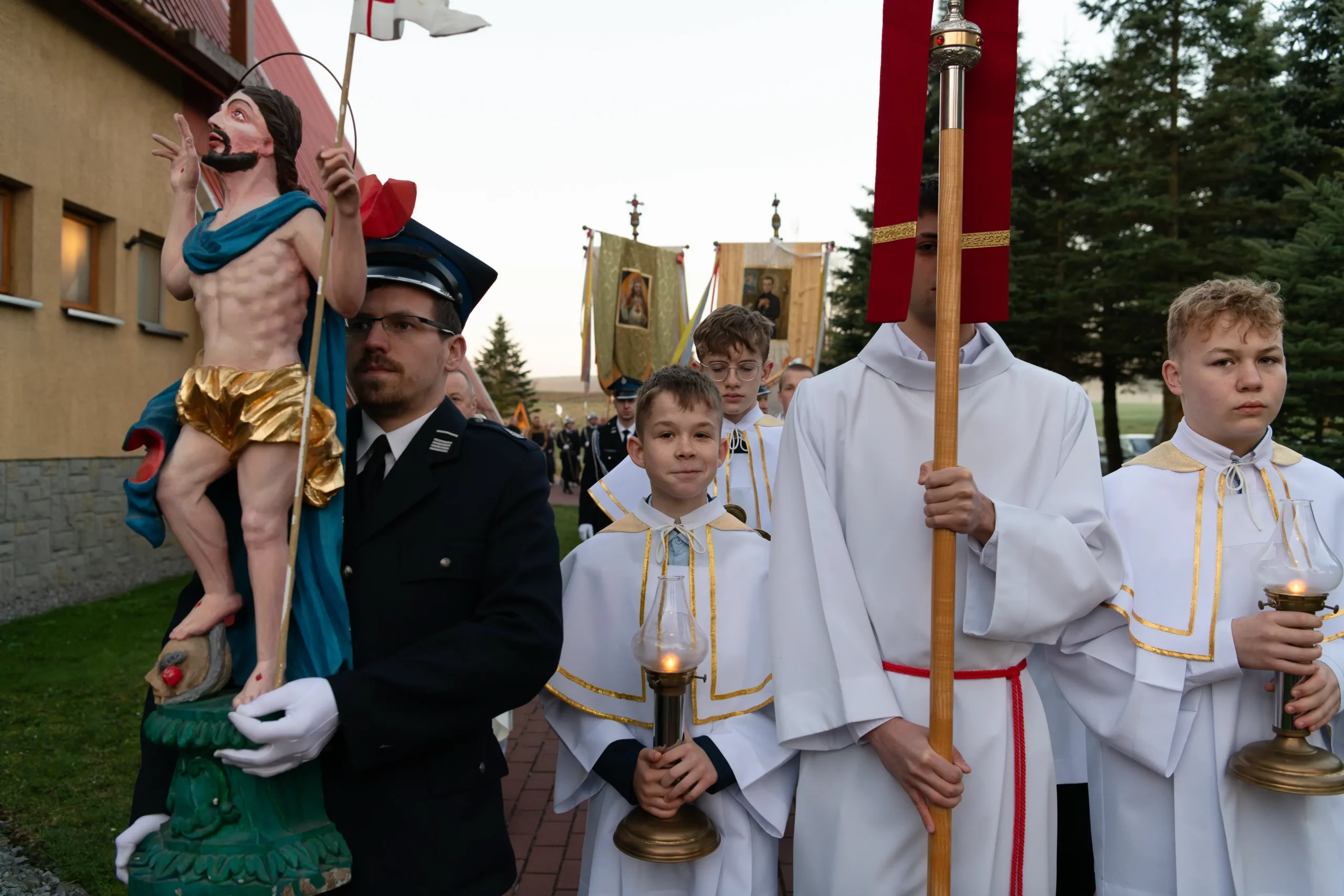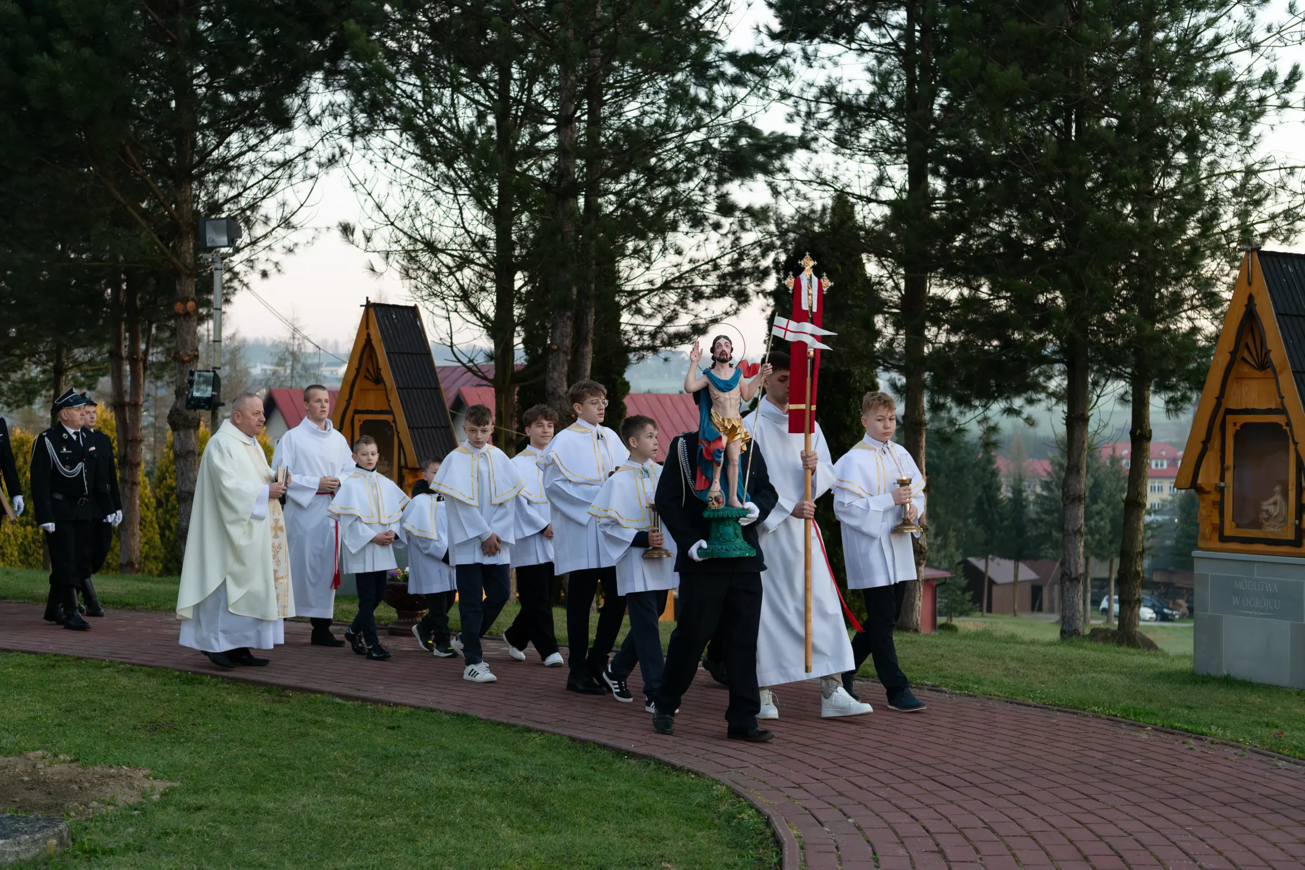 - Strażaków oraz pocztów sztandarowych za pełnienie warty przy Bożym Grobie i uświetnienie procesji.