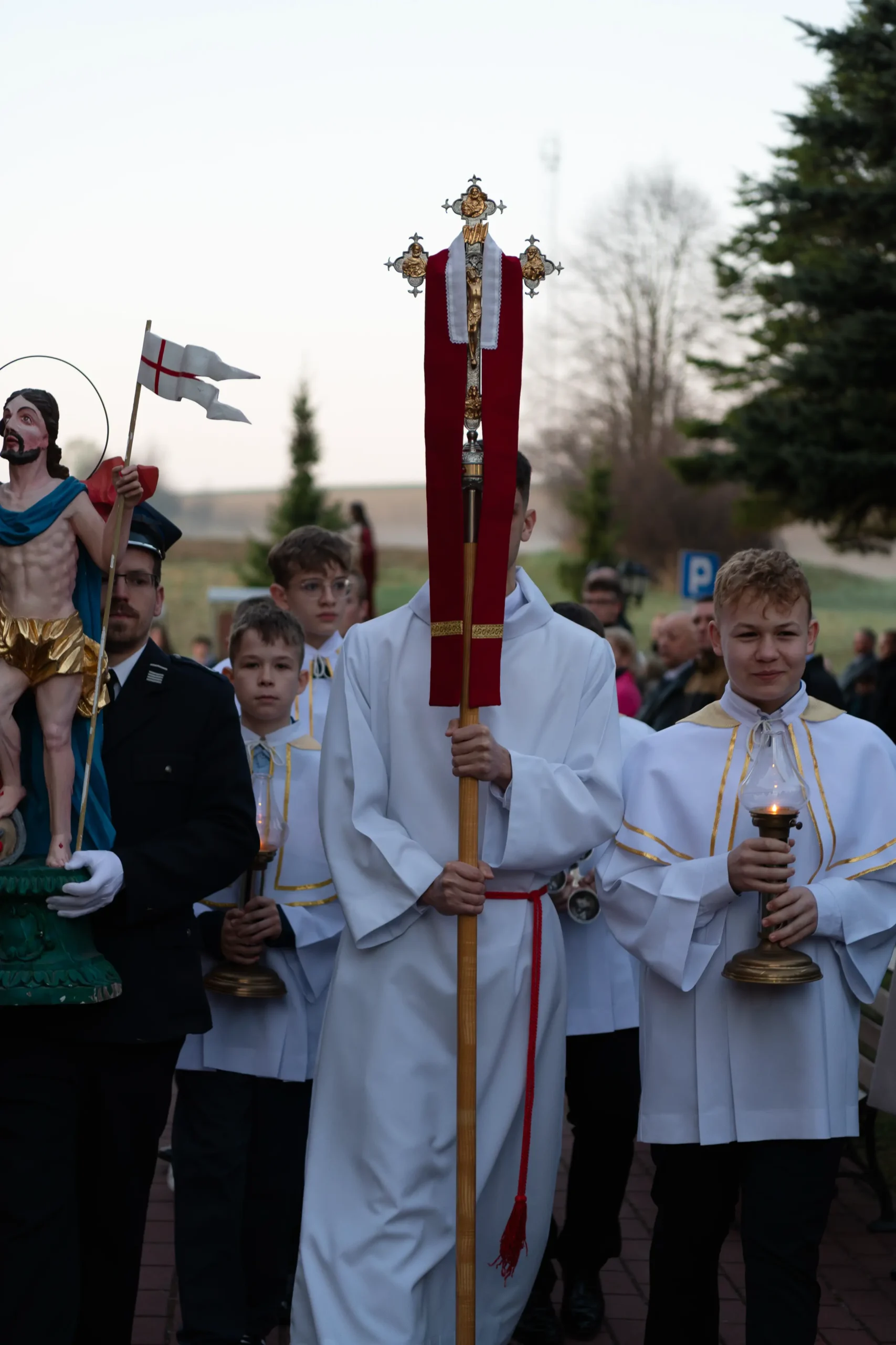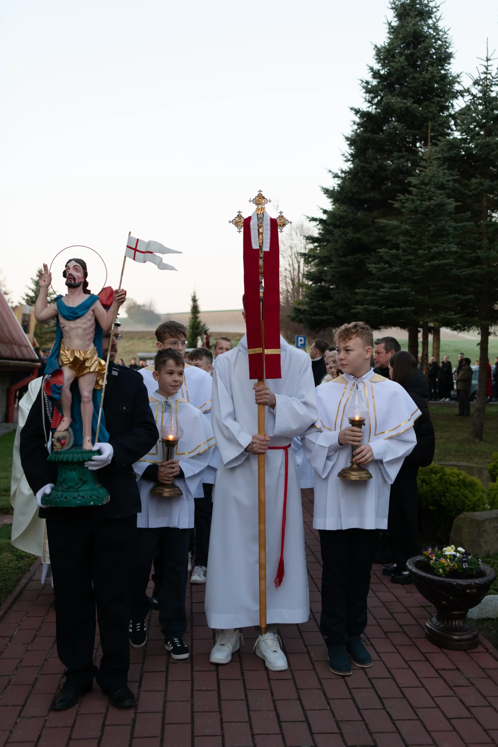 Weselcie się zastępy aniołów w niebie, weselcie się słudzy Boga, niech zabrzmią dzwony głoszące zbawienie” – tymi radosnymi słowami orędzia wielkanocnego nasza wspólnota parafialna rozpoczęła świętowanie zwycięstwa Chrystusa nad śmiercią i szatanem. Tegoroczna procesja rezurekcyjna, w której trzykrotnie okrążyliśmy świątynię za Najświętszym Sakramentem, była publicznym wyznaniem naszej wiary w zmartwychwstanie.
