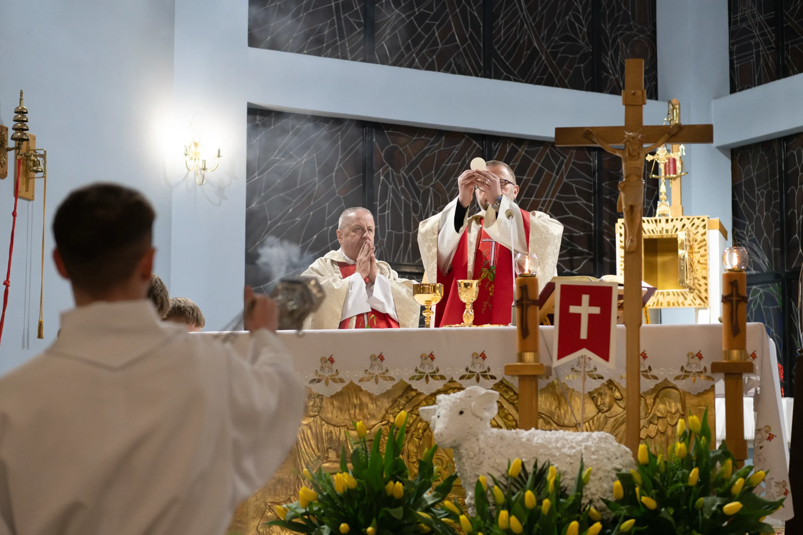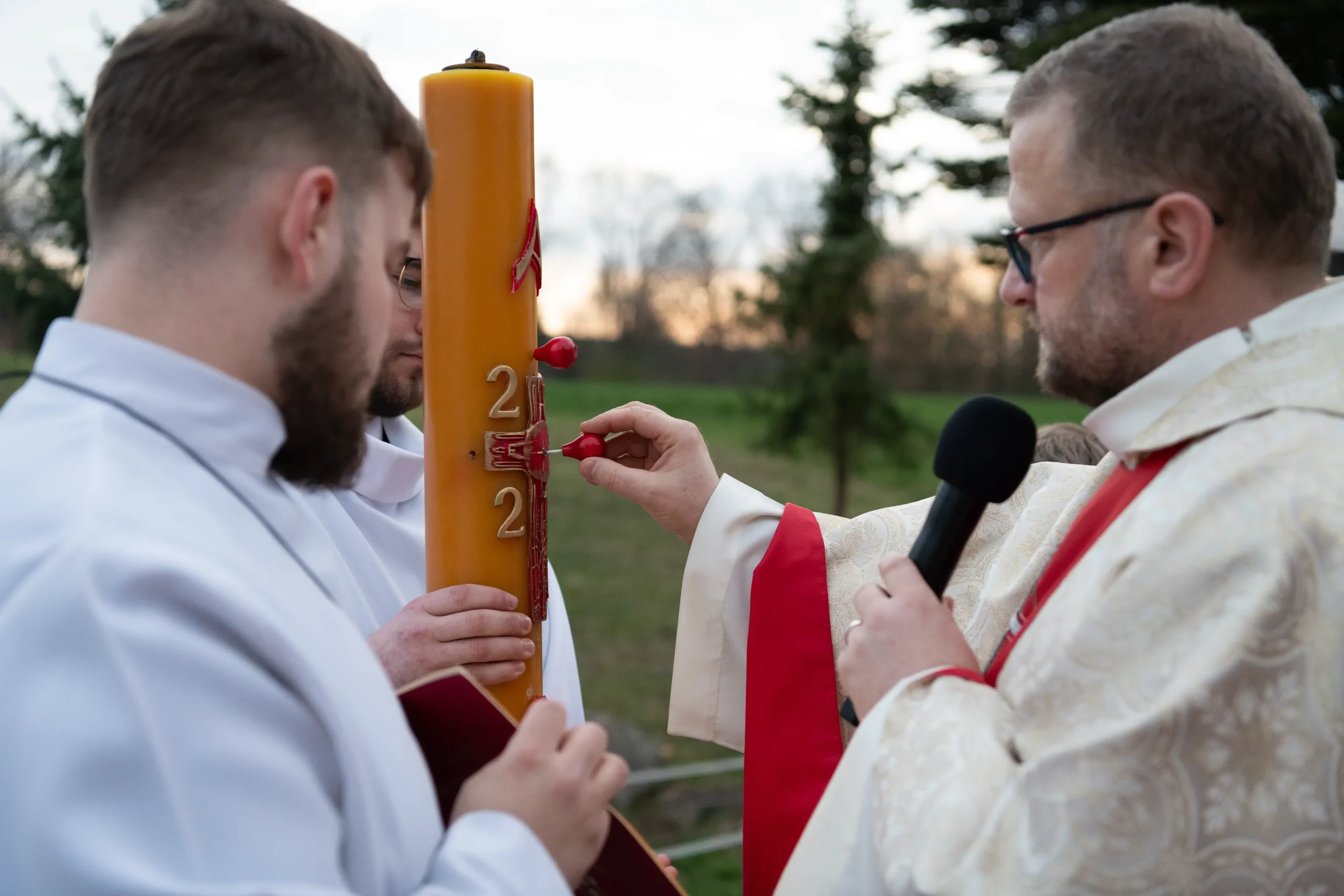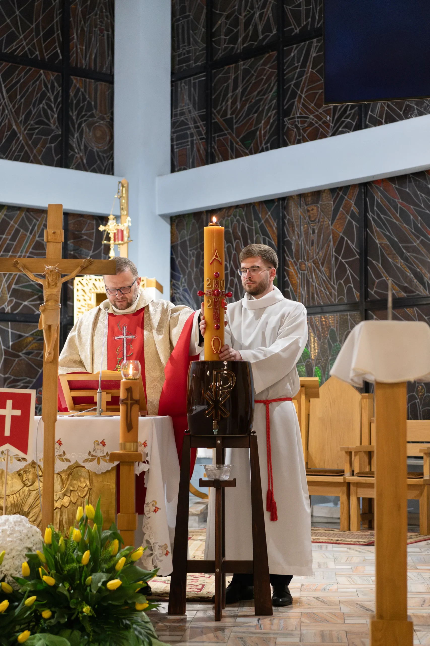 Podczas liturgii chrzcielnej pobłogosławiono wodę, a wierni, trzymając zapalone świece, odnowili przyrzeczenia chrzcielne. Zwieńczeniem uroczystości była Eucharystia – pierwsza w pełni przeżywana liturgia wielkanocna.