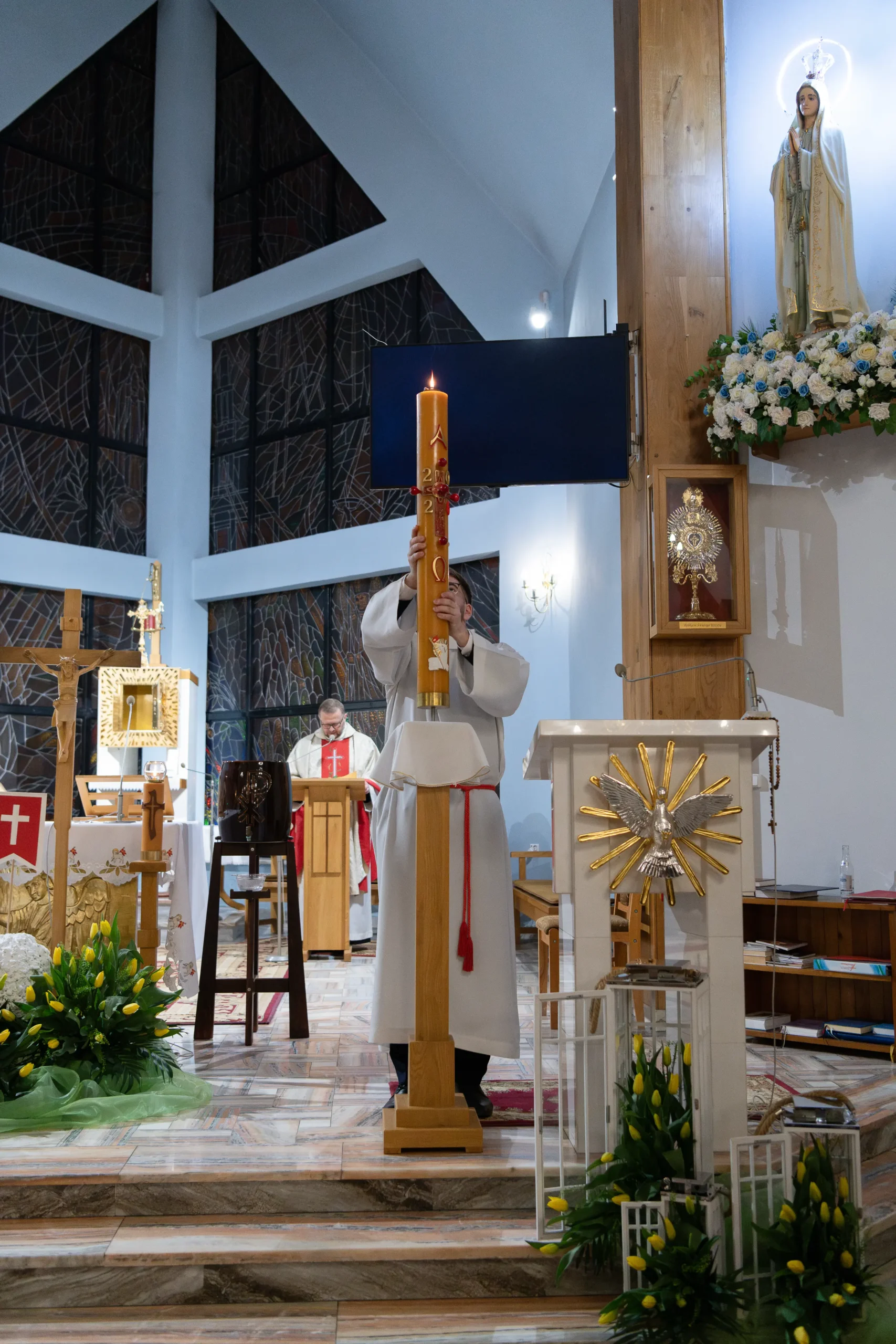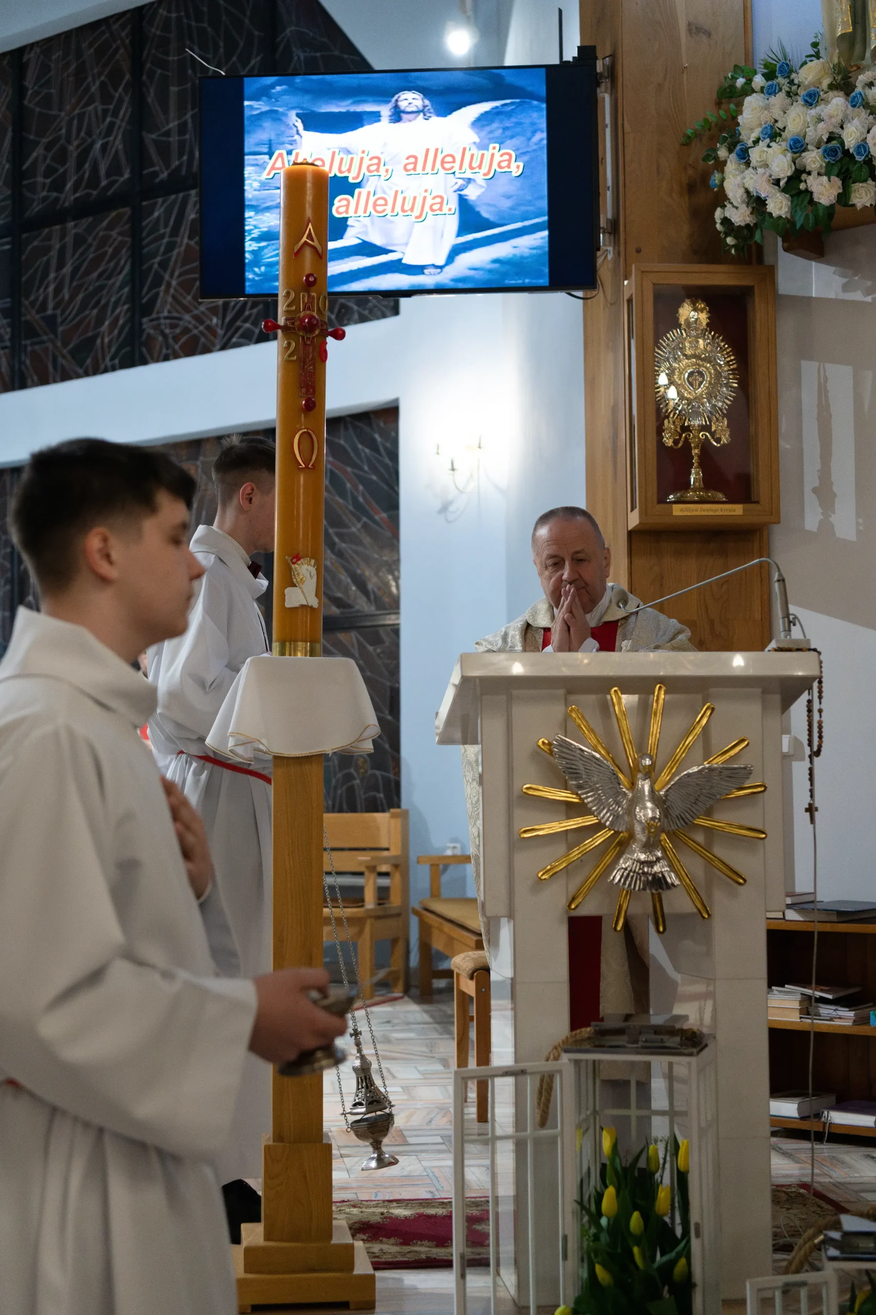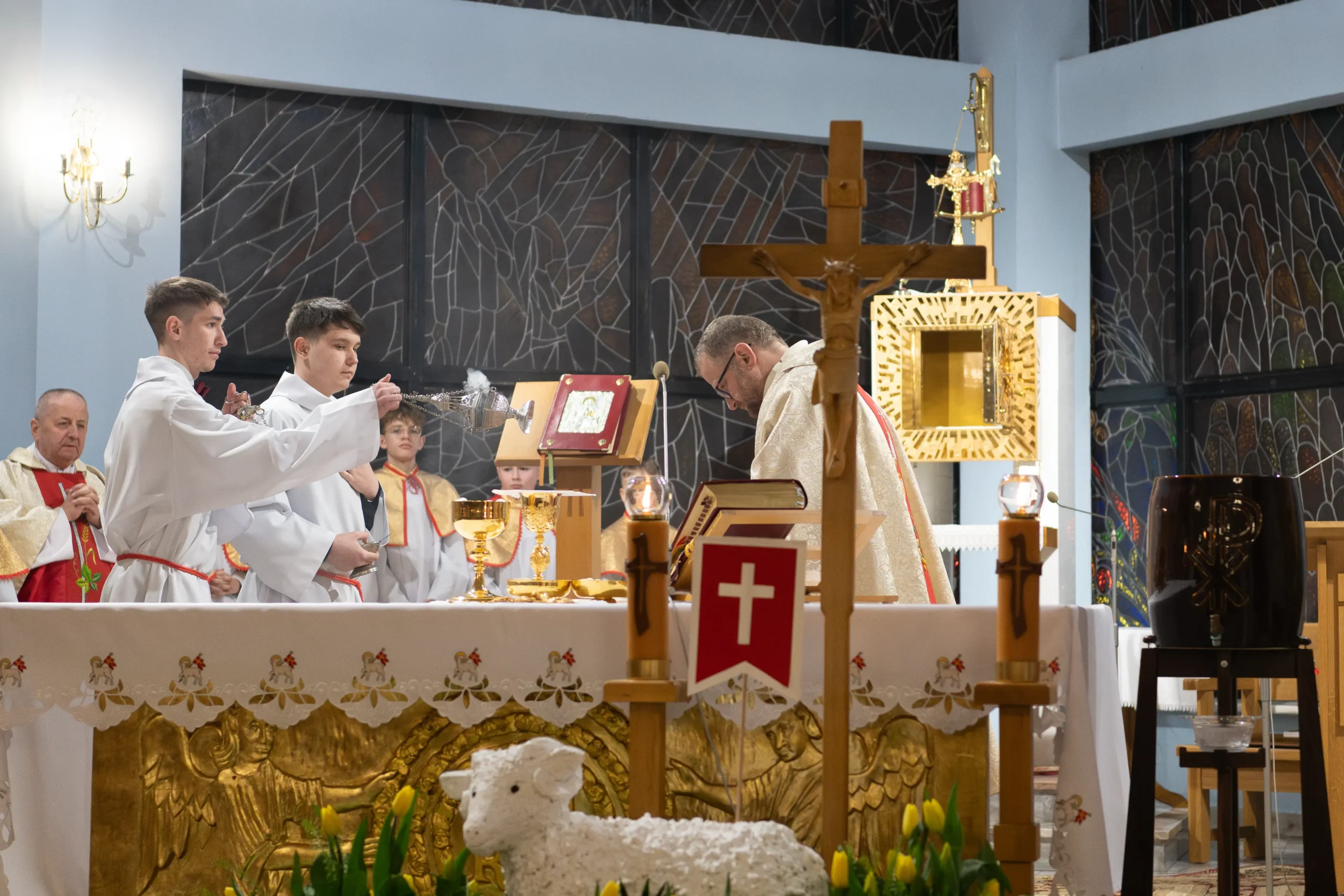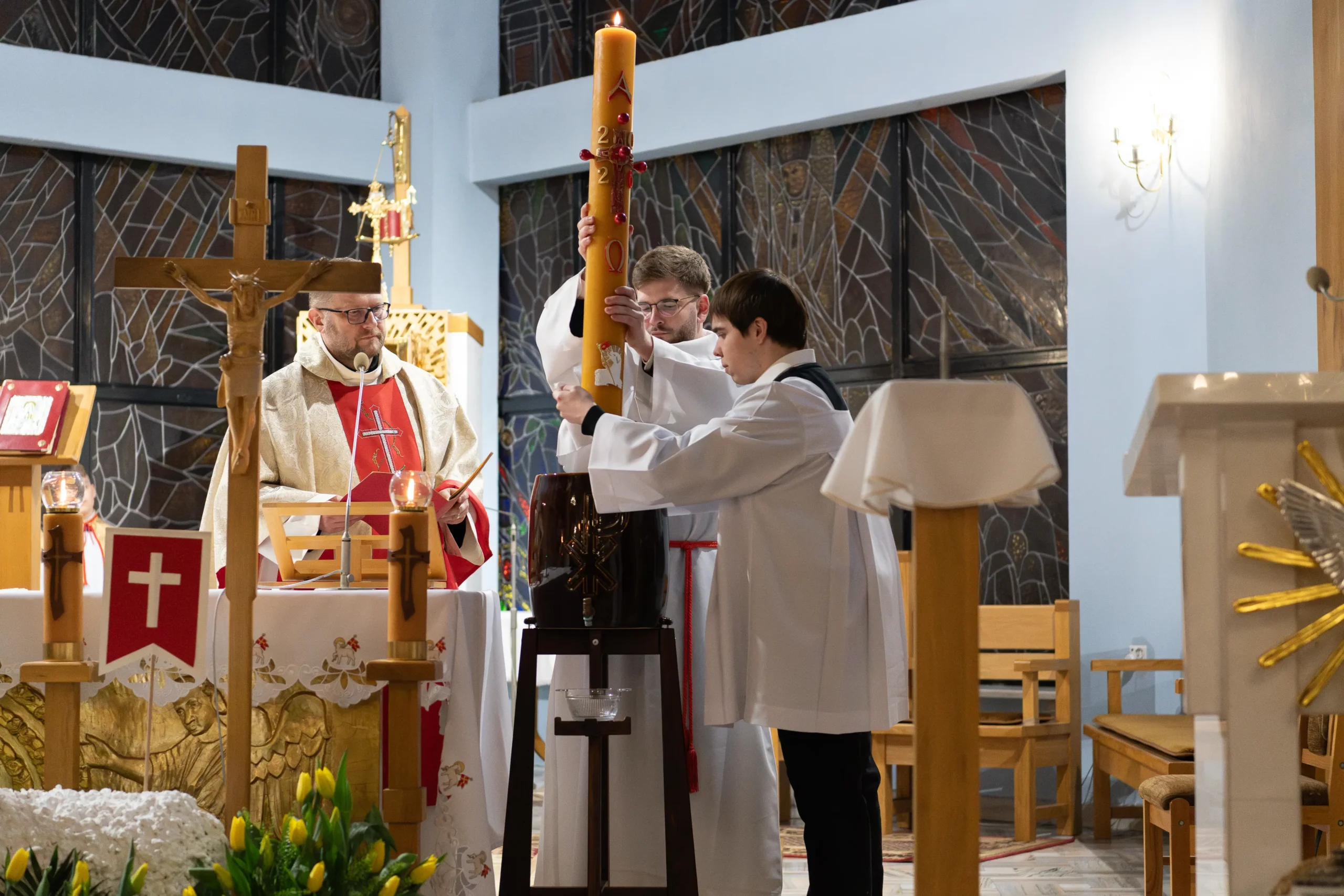 W rozbudowanej liturgii słowa wysłuchaliśmy najważniejszych wydarzeń historii zbawienia – od stworzenia świata, przez wyjście Izraelitów z Egiptu, aż po zapowiedzi proroków. Radosne „Gloria” i „Alleluja” wprowadziły nas w Ewangelię o pustym grobie.